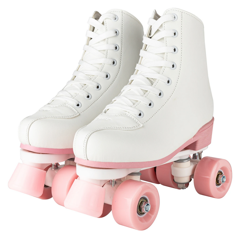 2024 PU Leather Flashing 4 Wheels Roller Skates For Women Double Row Skate Shoes Beginner Quad Sneaker Skating Ice Rink Training