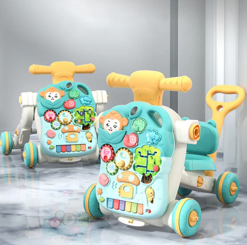 3 in 1 Foldable Baby Walker Anti Tip Toddler Push Walker with Removable Feeding Tray No Battery Anti O Leg