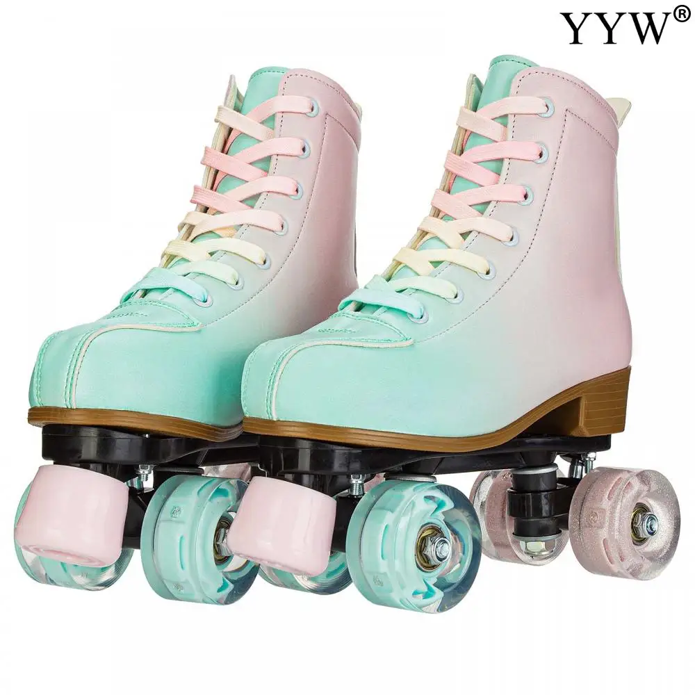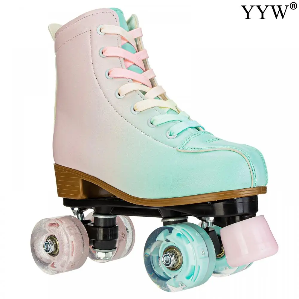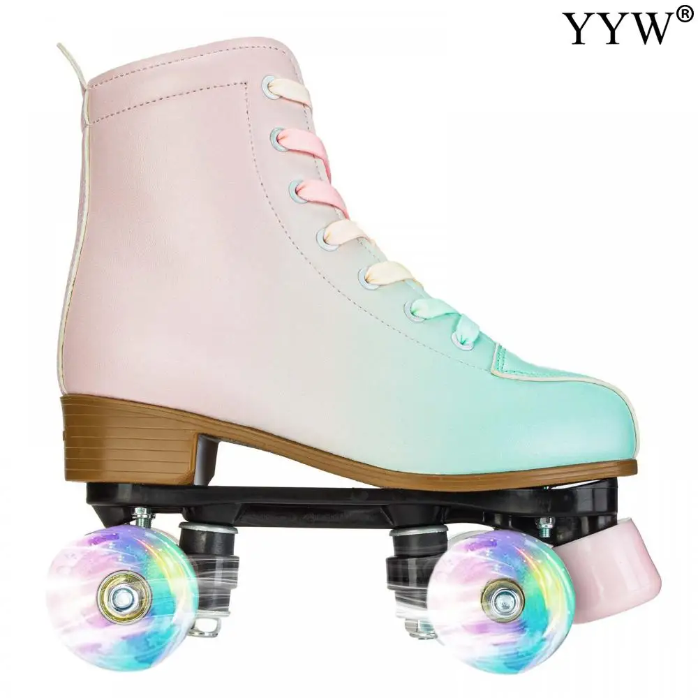 PVC & PU Leather Roller Skates,2024 PU Leather Flashing 4 Wheels Roller Skates For Women Double Row Skate Shoes Beginner Quad Sneaker Skating Ice Rink Training