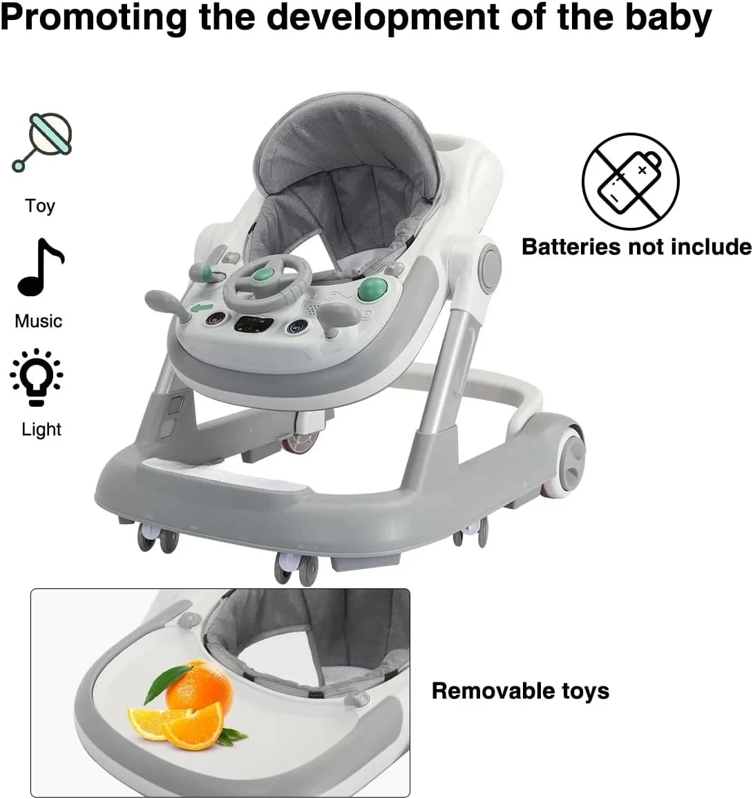3 in 1 Foldable Baby Walker Anti Tip Toddler Push Walker with Removable Feeding Tray No Battery Anti O Leg