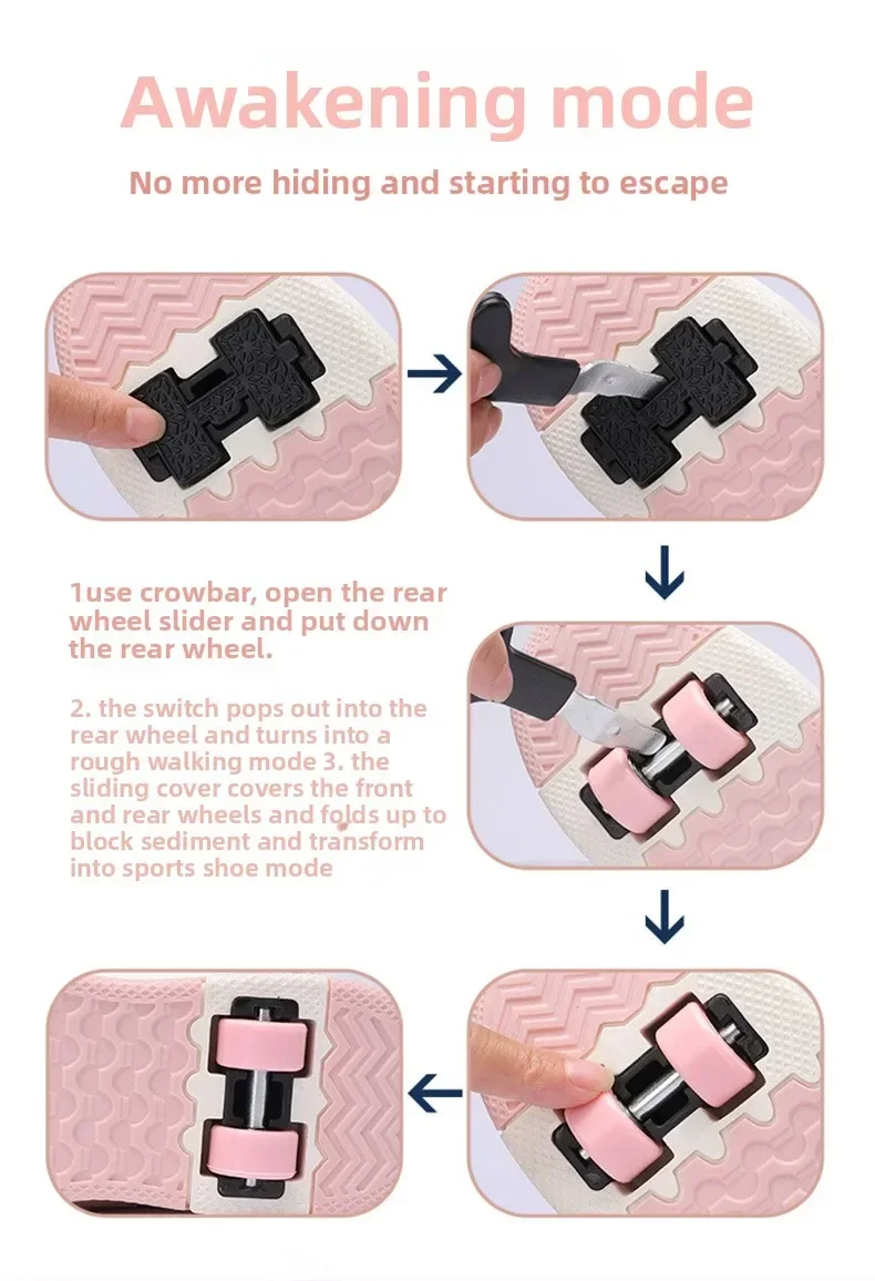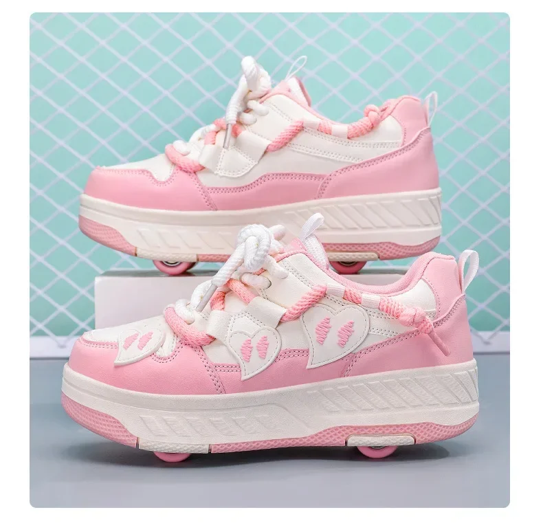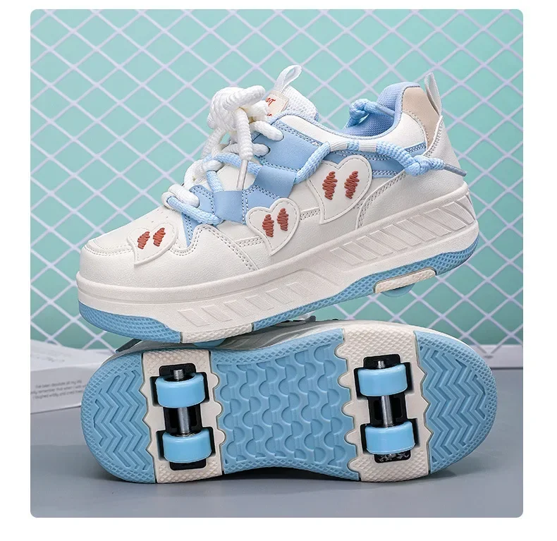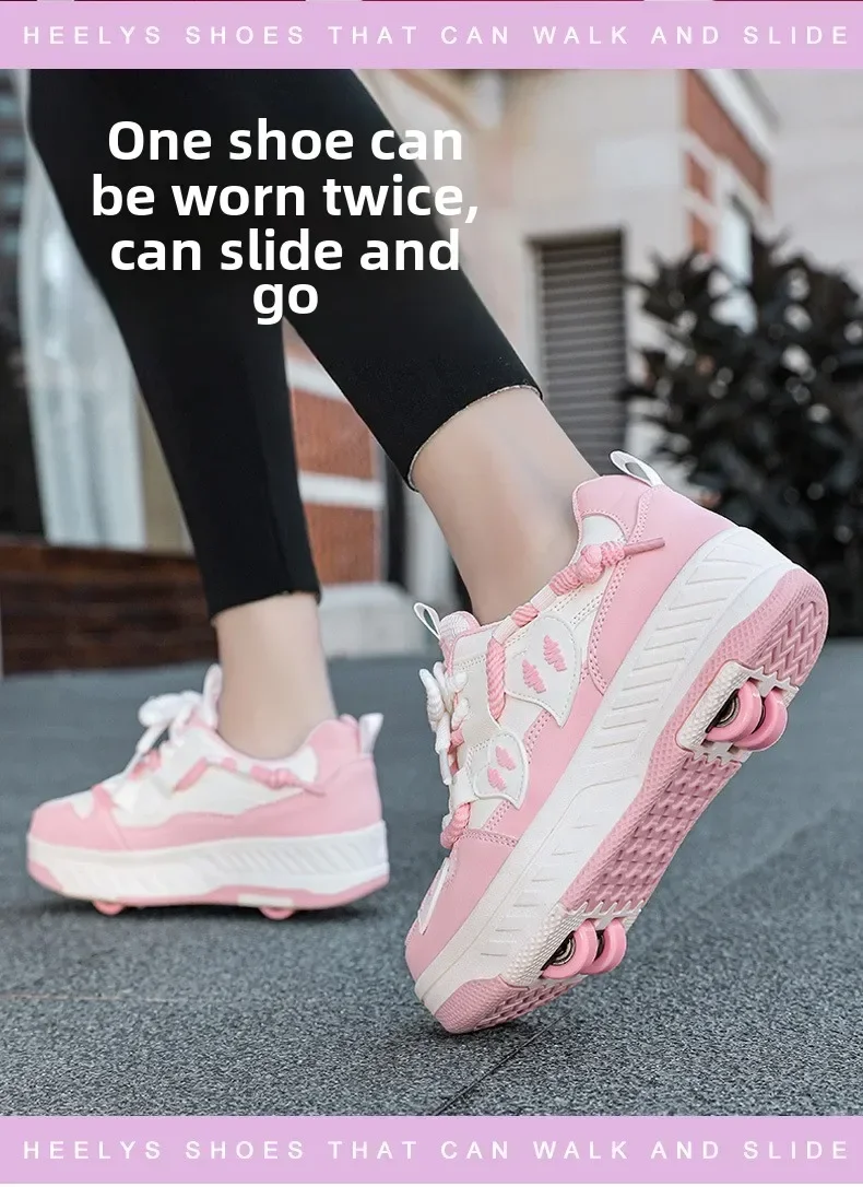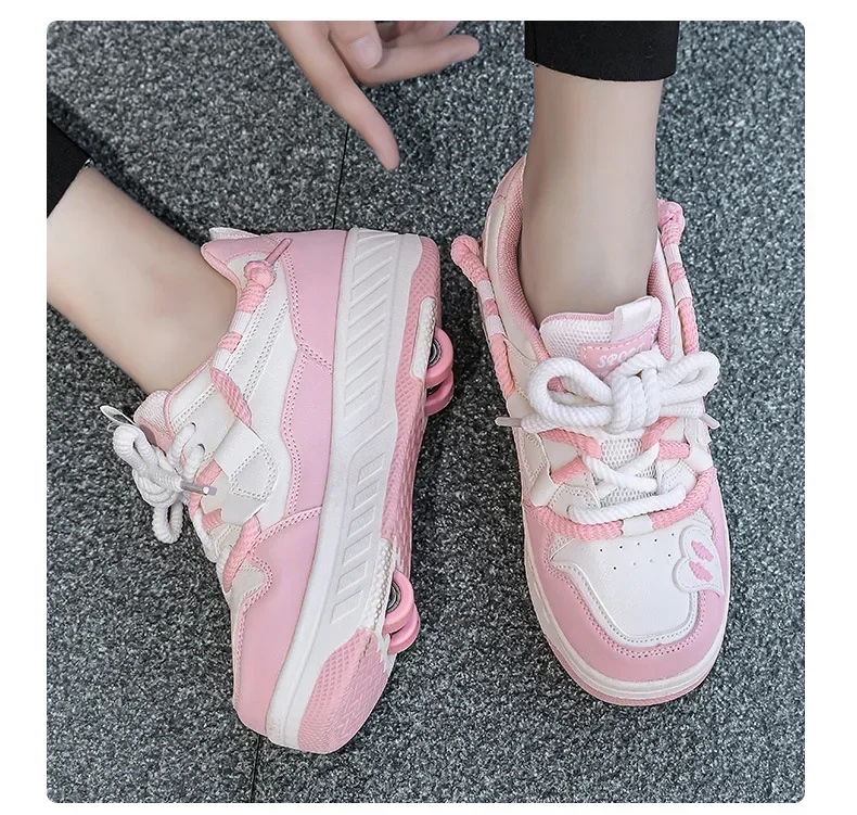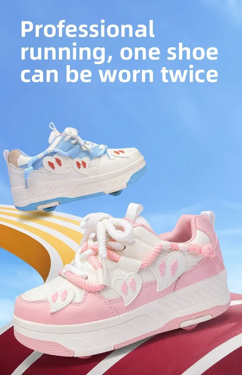 4 Wheels Roller Skate Shoes for Boys Girls Sneakers with Detachable Wheels Sport Shoe for Kids Removable Pulley Skate Skating