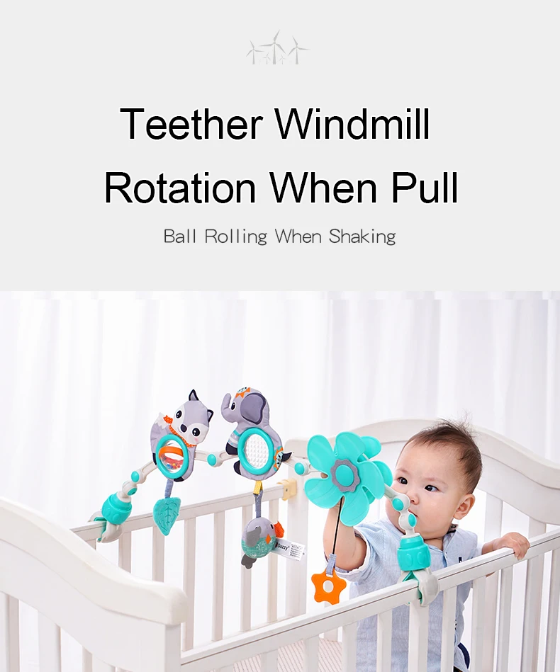 �� Parent-Child Interactive Toys: The bassinet mobile toy can be detached individually that you can hang it on your finger to interactive play with baby. Pull the teether to spin flower windmill, squeeze snail to play music, perfect toys to draw infants’ attention and keep them from boring when drive.
