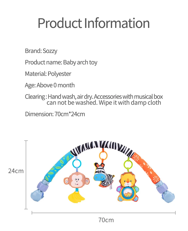 �� Early Learning Toys: When baby see the arch mobile toys, they will try to pull, grasp, touch or staring, not only can develop their tactile senses, color recognition, but also promote visual and auditory development, hand and eye coordination naturally.