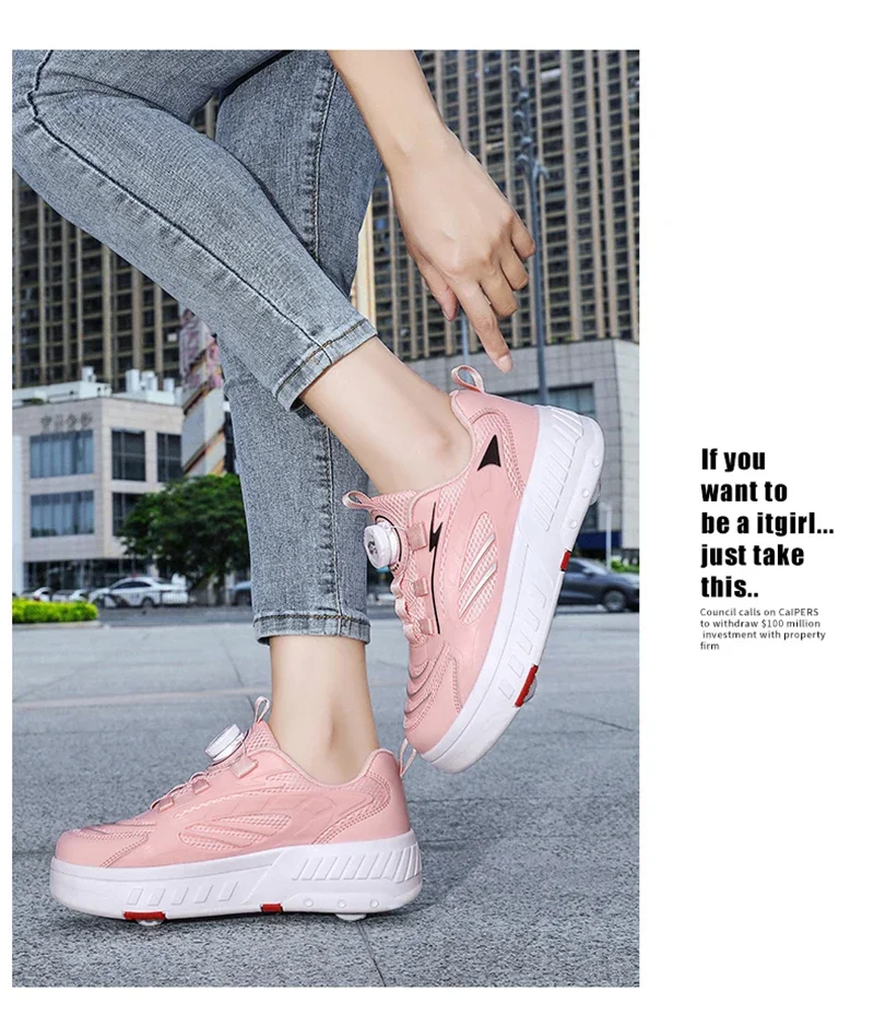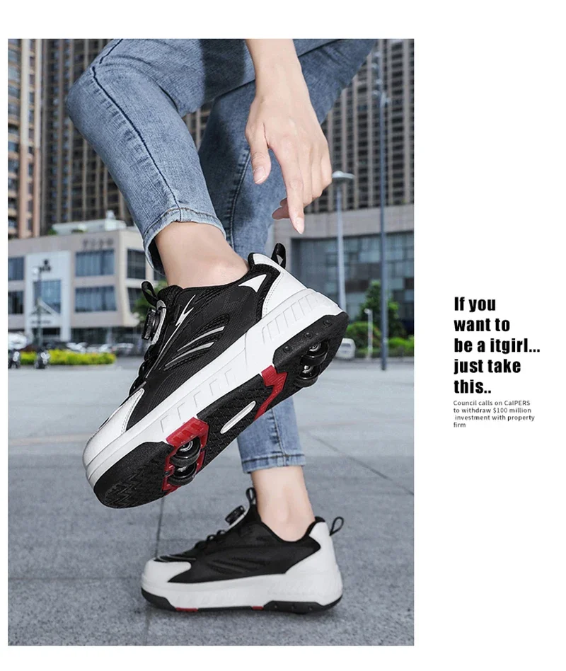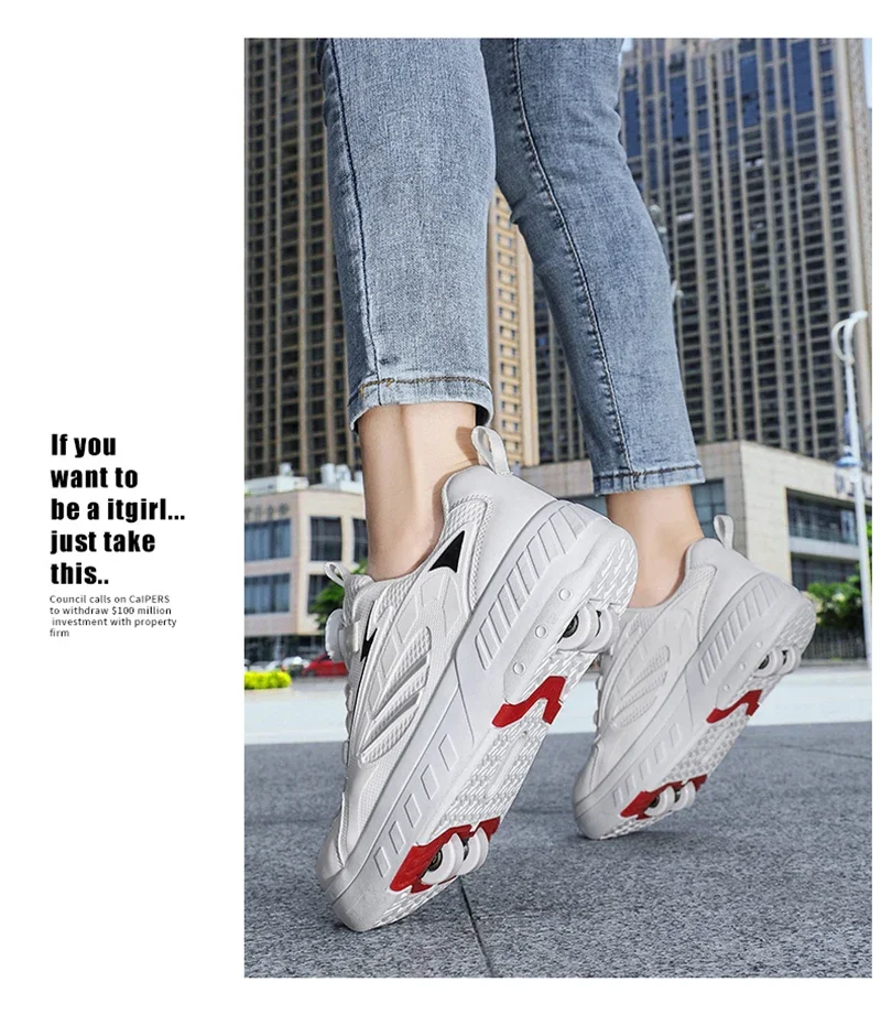 Double Row 4-Wheel Skates Roller Shoes with Wheels Dual-Purpose Roller Sneakers