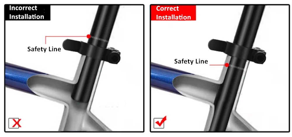 1.Attention buyer: Please install the seat tube without crossing the safety line.