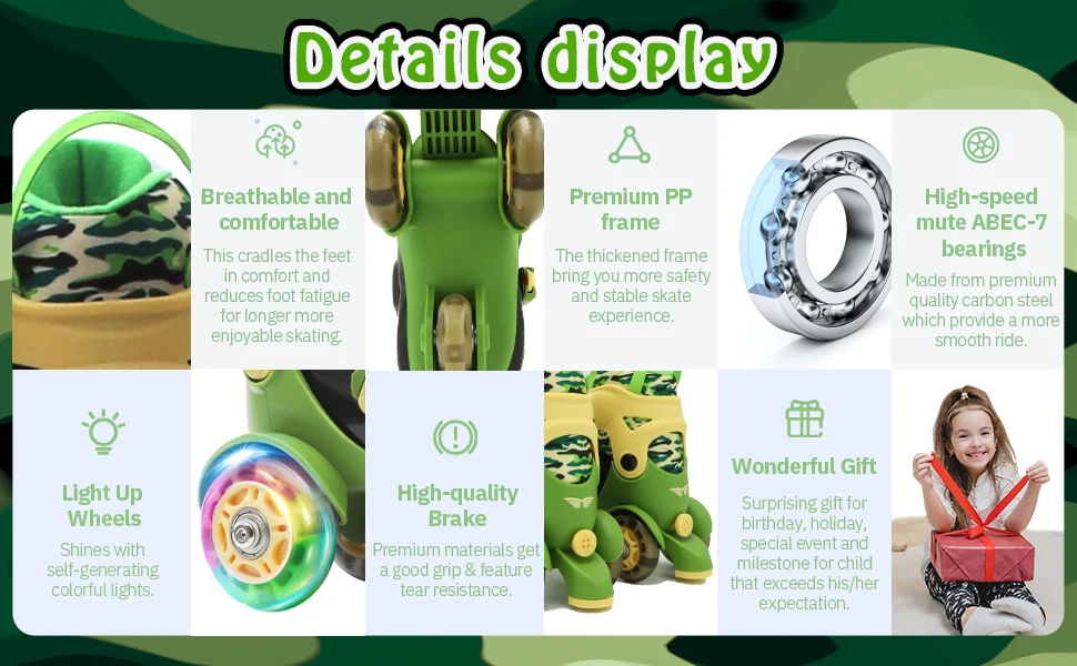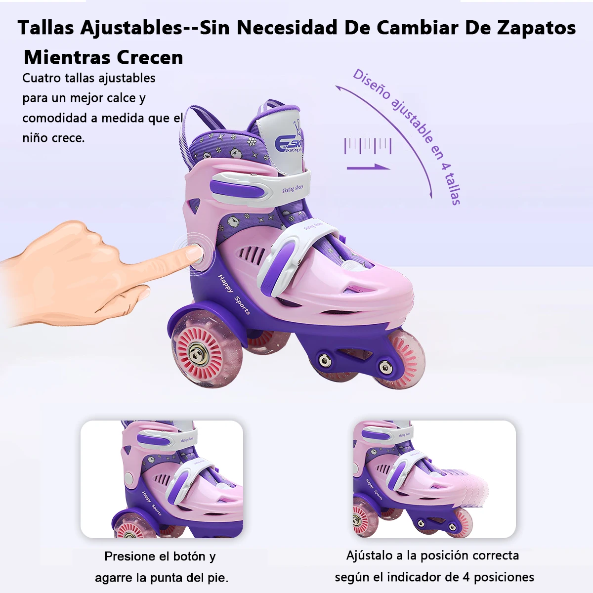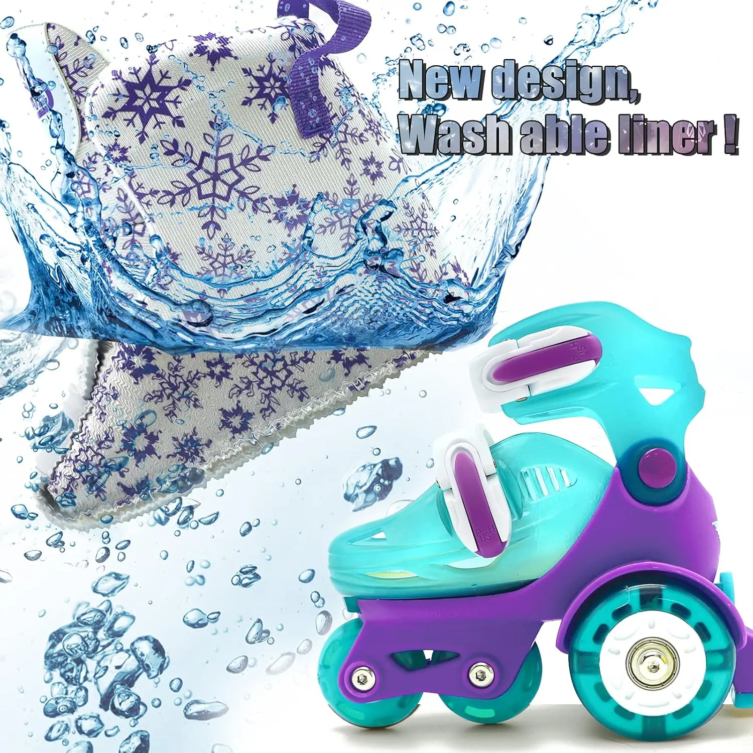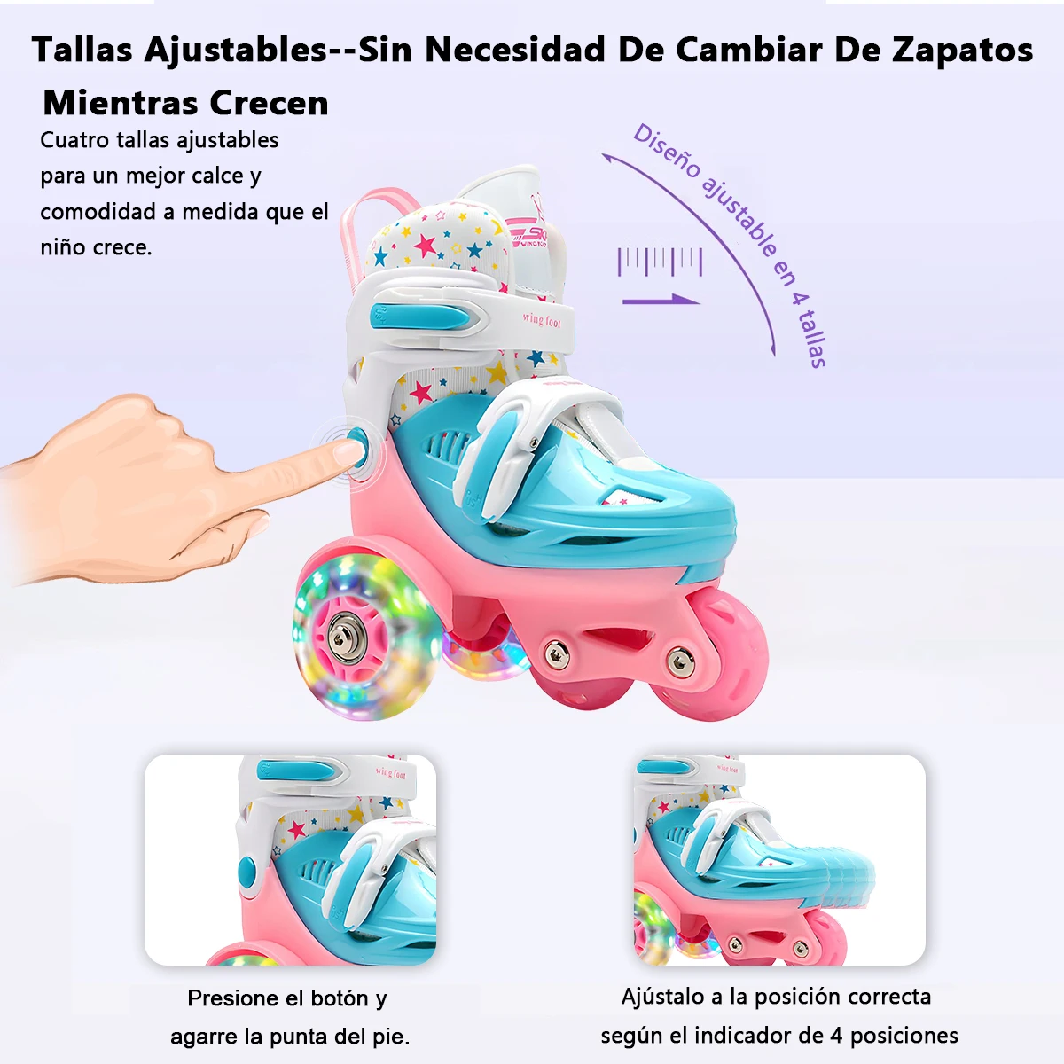 Kids Roller Skates Beginners Three-Point Roller Skates with Light up Wheels Adjustable Safety Assist Roller Skating Shoes