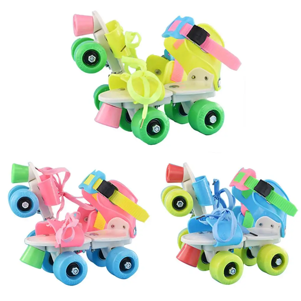 Kids Roller Skates Double Row 4 Wheel Skating Shoes Adjustable Size Sliding Slalom Inline Skates for Kids Boys Girls