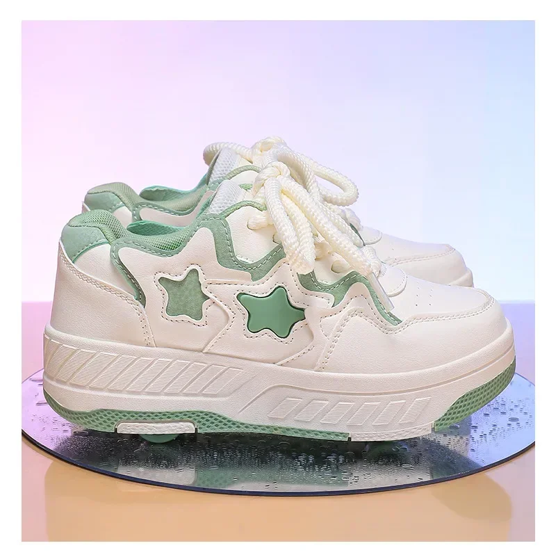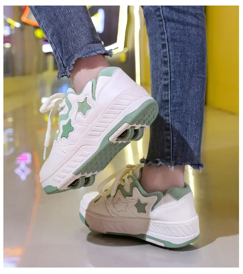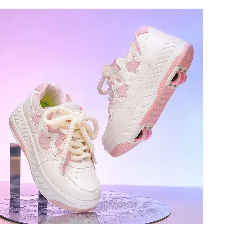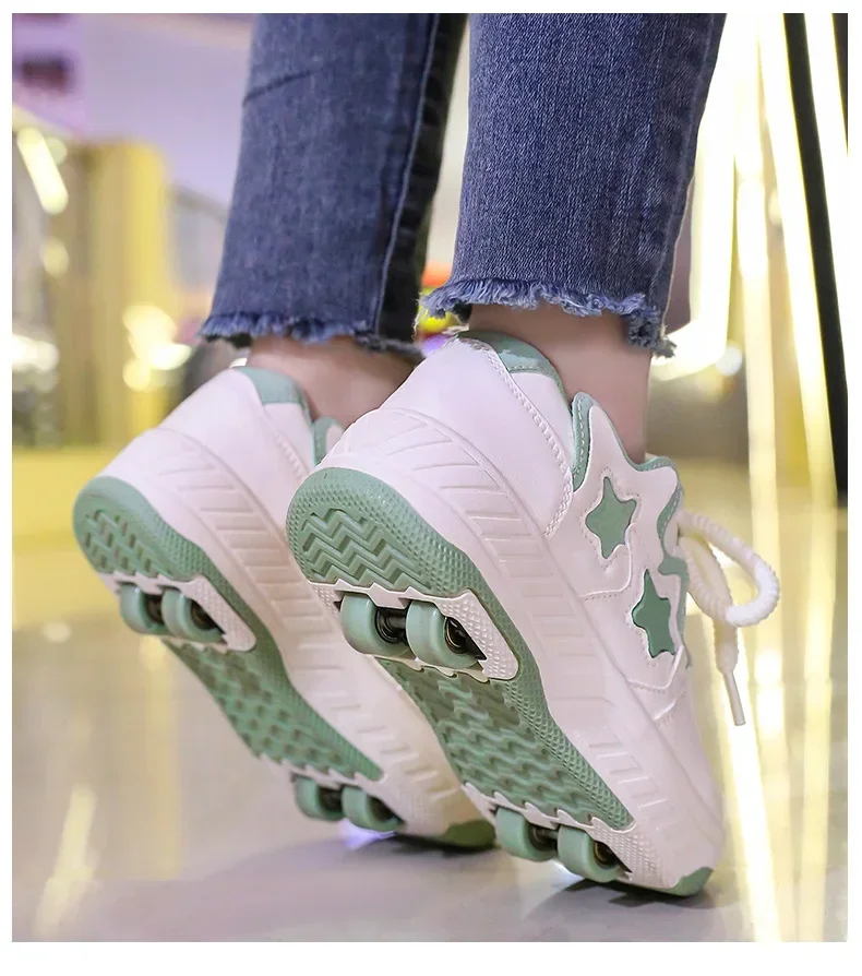 Removable Pulley Skate Skating Roller Skate Shoes for Boys Girls Upgraded Speed Sneakers with 4-Wheels for Kids Racing Skates