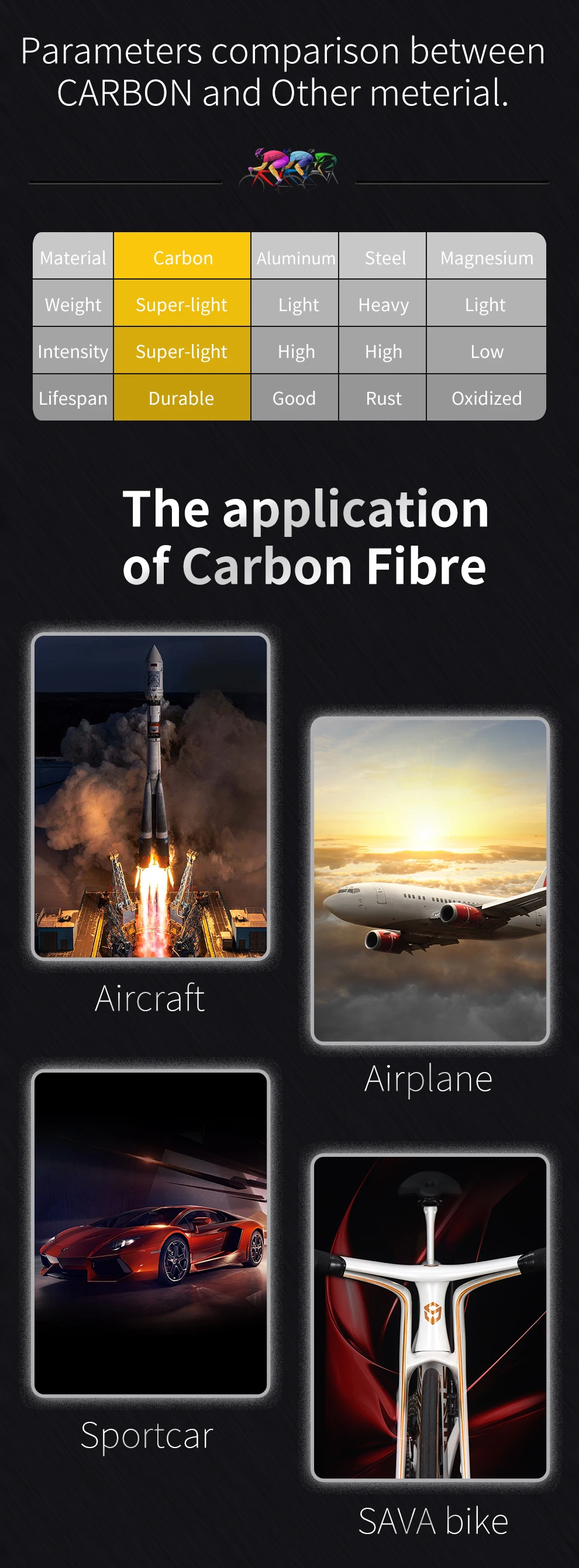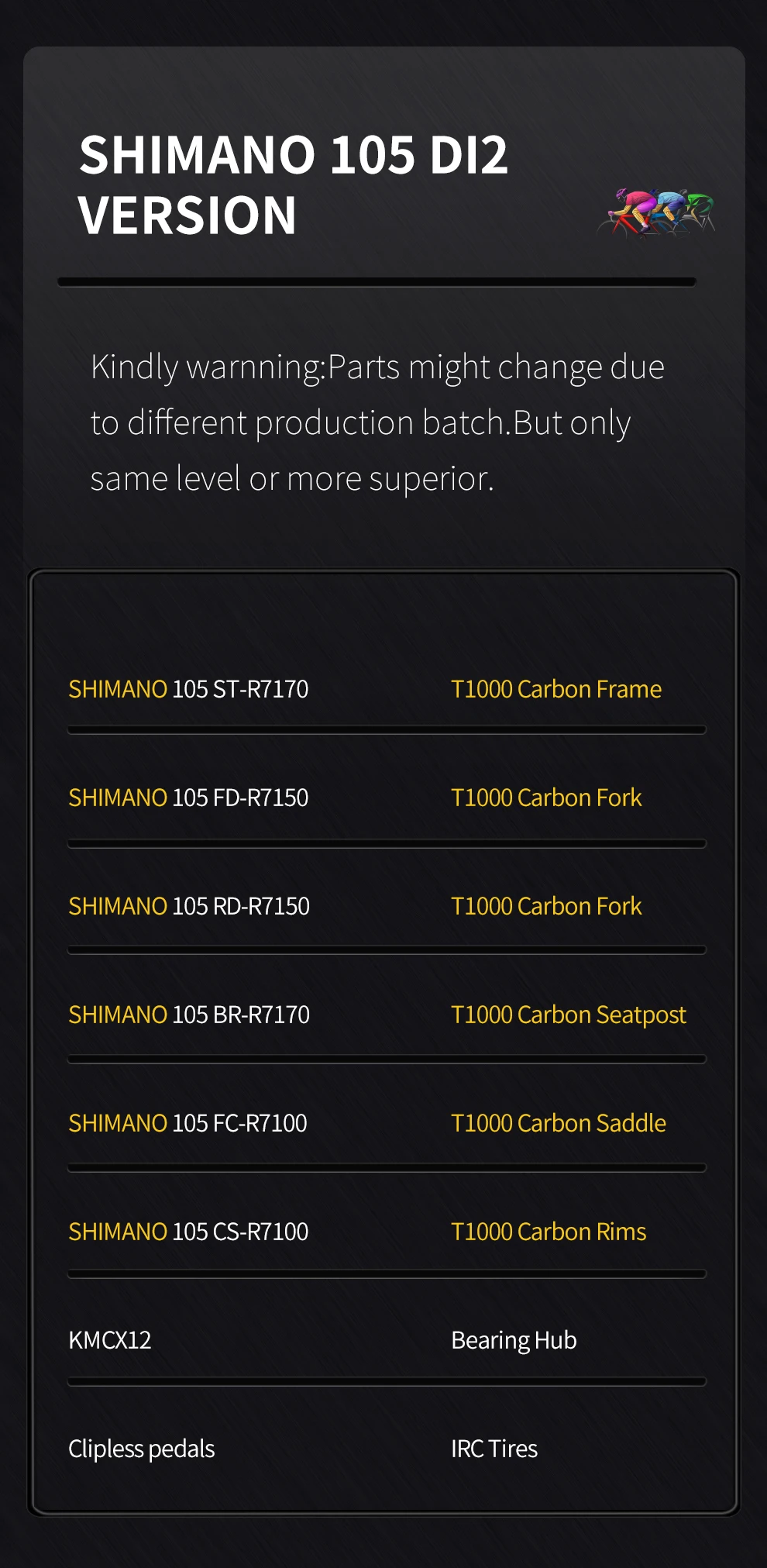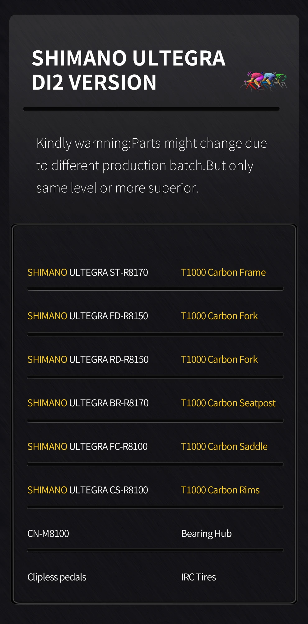 Seatpost material : T1000 carbon fiber, 350mm