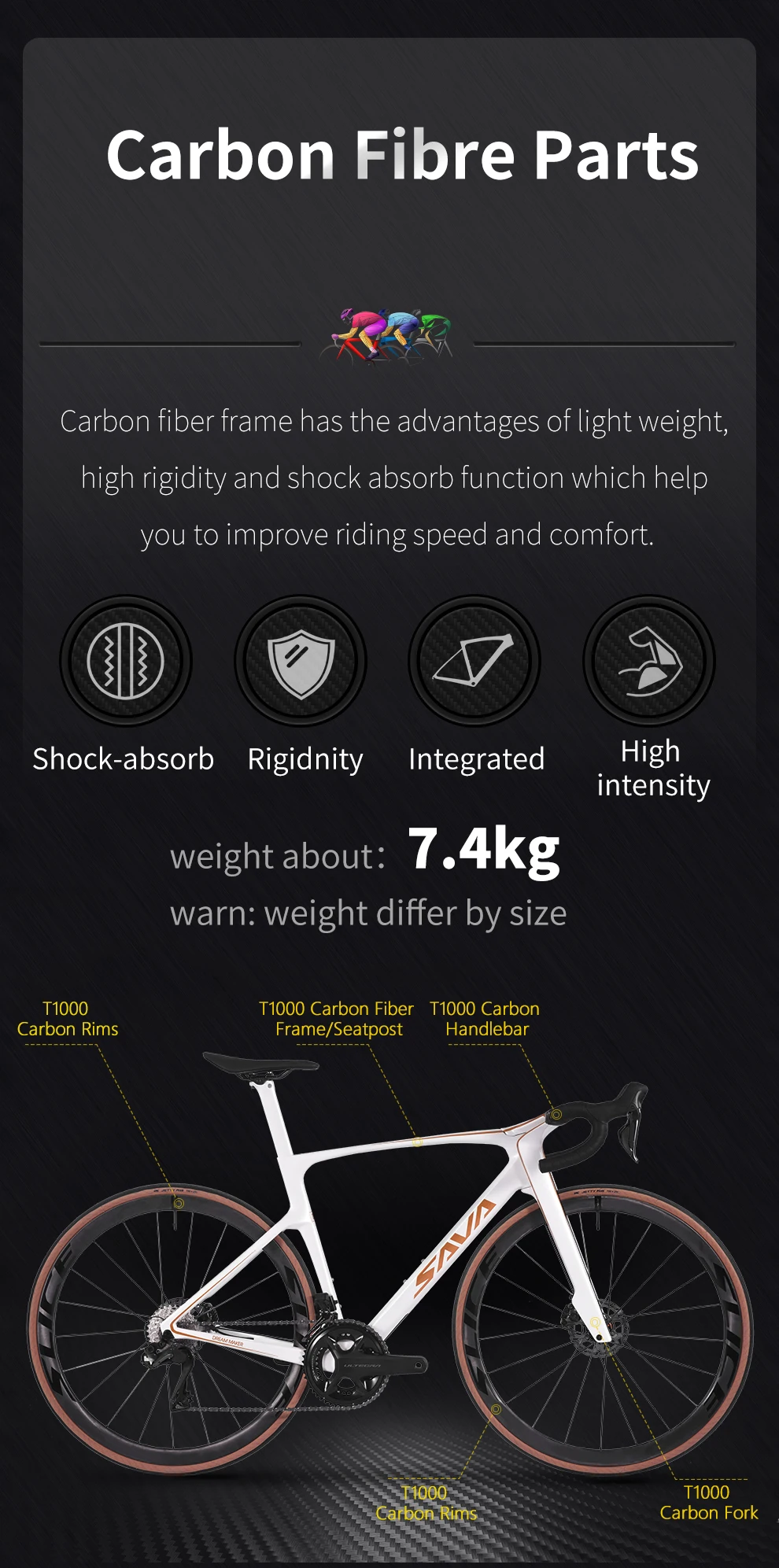 SAVA Dream Maker Full Carbon Road Bike Electronic Shift SHIMAN0 Ultegra 8170 Di2 24-Speed 7.4kg Race Bike