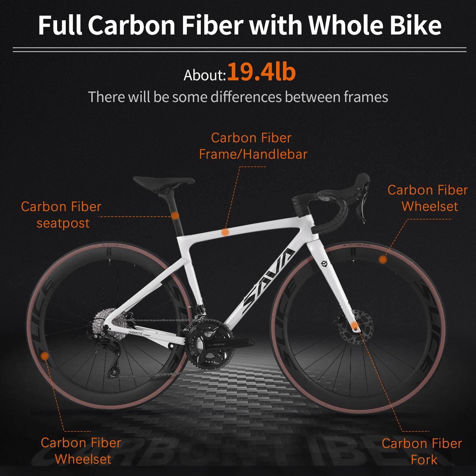 SAVA F20 Carbon Fiber Road Bike, Equipped with 105 R7120 24-Speed Groupset and Hydraulic Disc Brakes Adult Race Bike