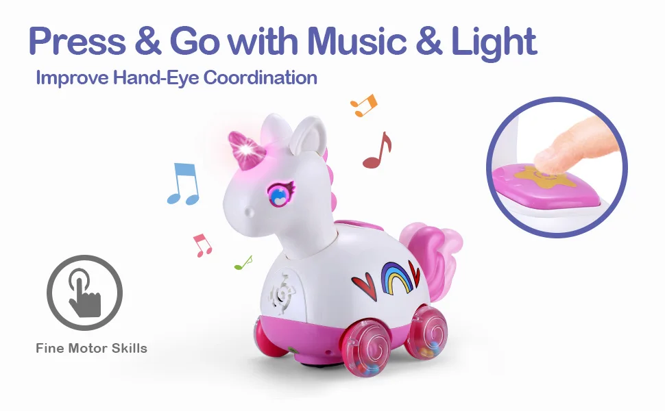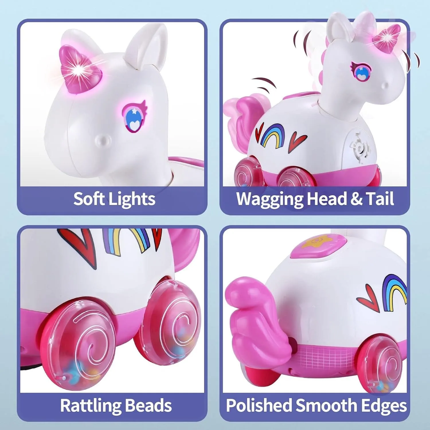 This unicorn toy makes an ideal 1st birthday gift, offering both entertainment and educational value.